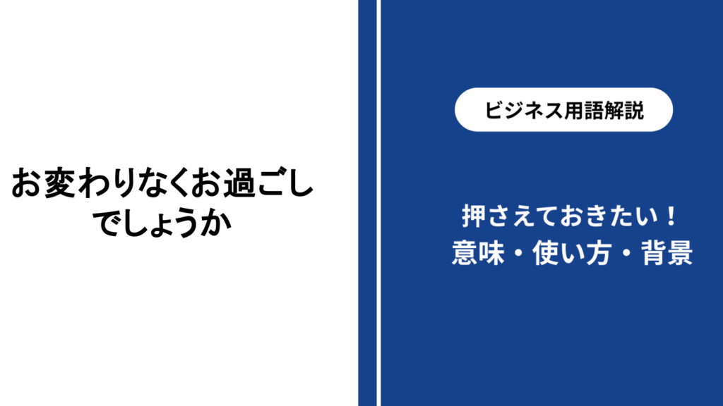 - I hope you are doing well.:ビジネスシーンなどで使われる丁寧な表現で、相手への配慮を示します。このフレーズは、「お変わりないですか」のように直接的ではなく、より一般的な挨拶として用いることができます。