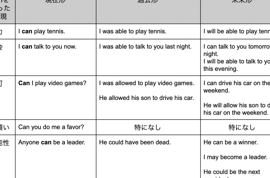 例文で学ぶcanの過去形