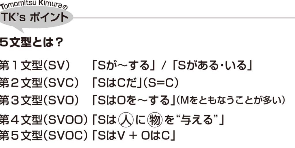英語の文型の語順で第1文型は sv ですが第2文型は何にあたるか