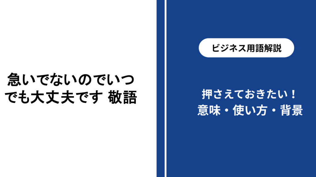 ビジネスシーンでは、「急いでないのでいつでも大丈夫です」という表現と類似のフレーズが存在します。これらのフレーズは、相手に対して配慮を示す点では共通していますが、ニュアンスや使う場面によって使い分ける必要があります。ここでは、いくつかの類似フレーズを紹介し、それぞれの特徴について考察します。