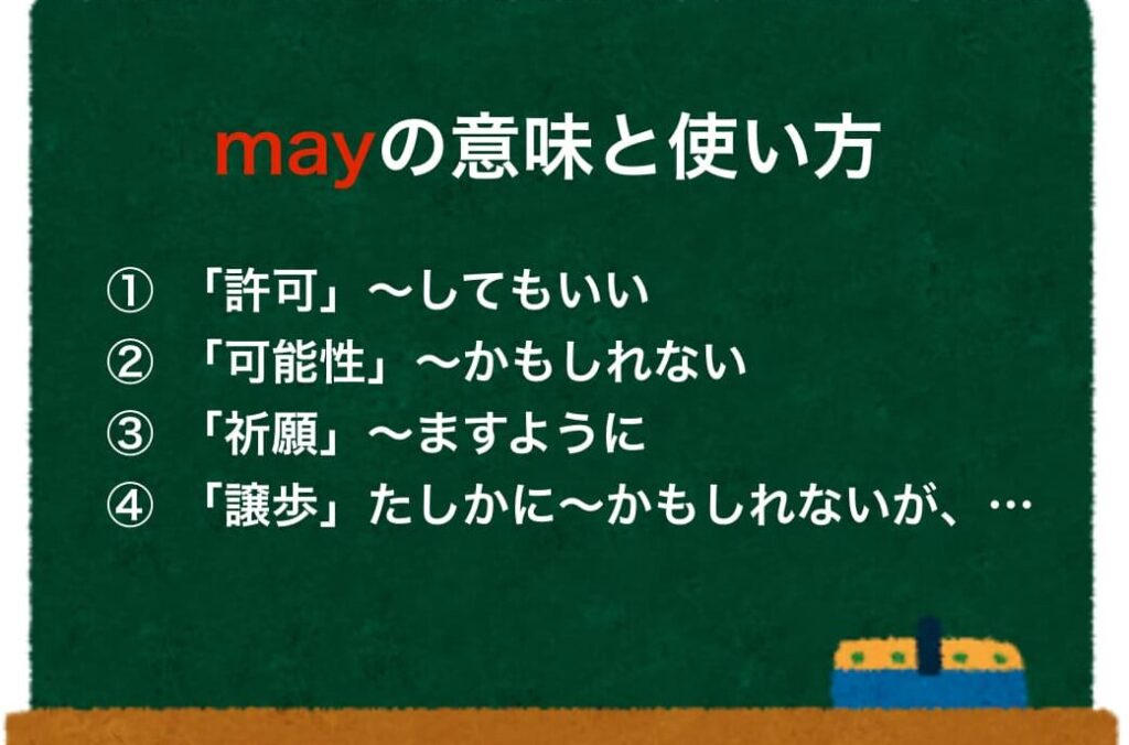 英語において、「may」という単語には可能性や許可を表す意味があります。例えば、以下のような文脈で使用されます。